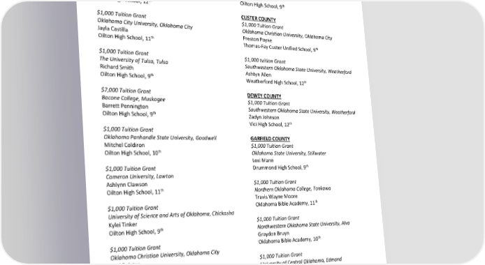 2023 OKLAHOMA SCHOLARSHIP RECIPIENTS Page 2 Page 4
