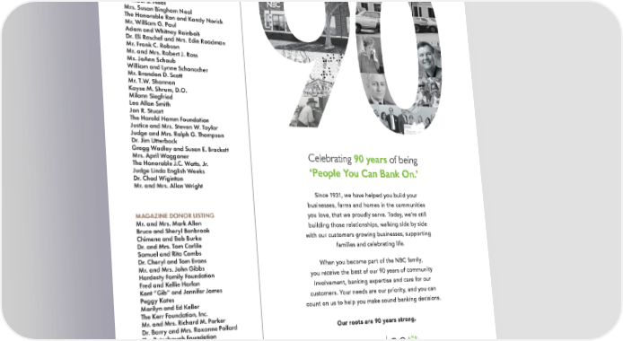 Tom and Judy Love Erika Lucas Mollie Bennett McCurdy Tom and Brenda McDaniel Bob Meinders Frank and Debbi Merrick Mr. and Mrs. Harry Merson Mr. Wes Milbourn Scott Moore Michael S. Neal Mrs. Susan Bingham Neal The Honorable Ron and Kandy Norick Mr. William G. Paul Adam and Whitney Rainbolt Dr. Eli Reschef and Mrs. Edie Roodman Mr. Frank C. Robson Mr. and Mrs. Robert J. Ross Ms. JoAnn Schaub William and Lynne Schonacher Mr. Brandon D. Scott Mr. T.W. Shannon Kayse M. Shrum, D.O. Milann Siegfried Lee Allan Smith Jon R. Stuart The Harold Hamm Foundation Justice and Mrs. Steven W. Taylor Judge and Mrs. Ralph G. Thompson Dr. Jim Utterback Gregg Wadley and Susan E. Brackett Mrs. April Waggoner The Honorable J.C. Watts, Jr. Judge Linda English Weeks Dr. Chad Wiginton Mr. and Mrs. Allen Wright MAGAZINE DONOR LISTING Mr. and Mrs. Mark Allen Bruce and Sheryl Benbrook Chimene and Bob Burke Dr. and Mrs. Tom Carlile Samuel and Rita Combs Dr. Cheryl and Tom Evans Mr. and Mrs. John Gibbs Hardesty Family Foundation Fred and Kellie Harlan Kent “Gib” and Jennifer James Peggy Kates Marilyn and Ed Keller The Kerr Foundation, Inc. Mr. and Mrs. Richard M. Parker Dr. Barry and Mrs. Roxanne Pollard The Puterbaugh Foundation Brannon B. Smith Lee Allan Smith Pete White Mr. and Mrs. Joseph H. Williams With questions, please contact Breann Miller at 405.523.3203 or [email protected]. This list Member FDIC represents donors making unrestricted contributions as of June 1, 2022.