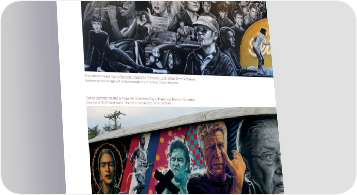 Still Blazing New Trails: The interior mural Carlos Barboza created for Edmond’s Jack Rabbit Slims Restaurant features iconic images of Hollywood greats. (Courtesy Carlos Barboza) Carlos Barboza created a mural for Oklahoma City’s Stonecloud Brewing Company located at 1012 Northwest First Street. (Courtesy Carlos Barboza) 1010