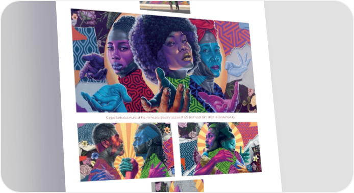June 2022 Oklahoma Hall of Fame Magazine Page 8 Page 10Carlos Barboza’s mural at the Homeland grocery located at 625 Northeast 36th Street in Oklahoma City. 77 35